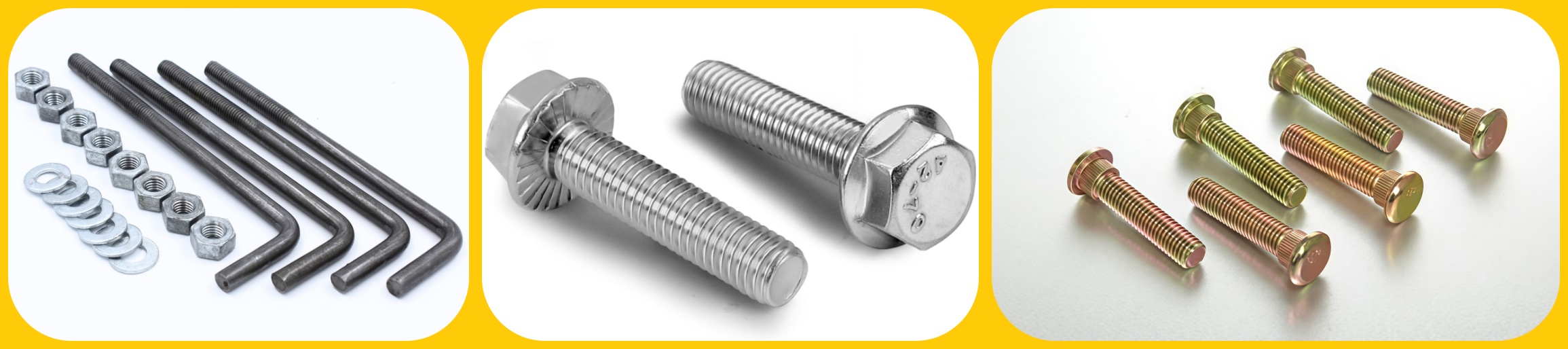 Dimensões e especificações: Definição: Thread (diâmetro, pitch), comprimento, cabeça, etc. Seleção: corresponda ao espaço/carga; Garanta o engajamento do thread. Siga os padrões.